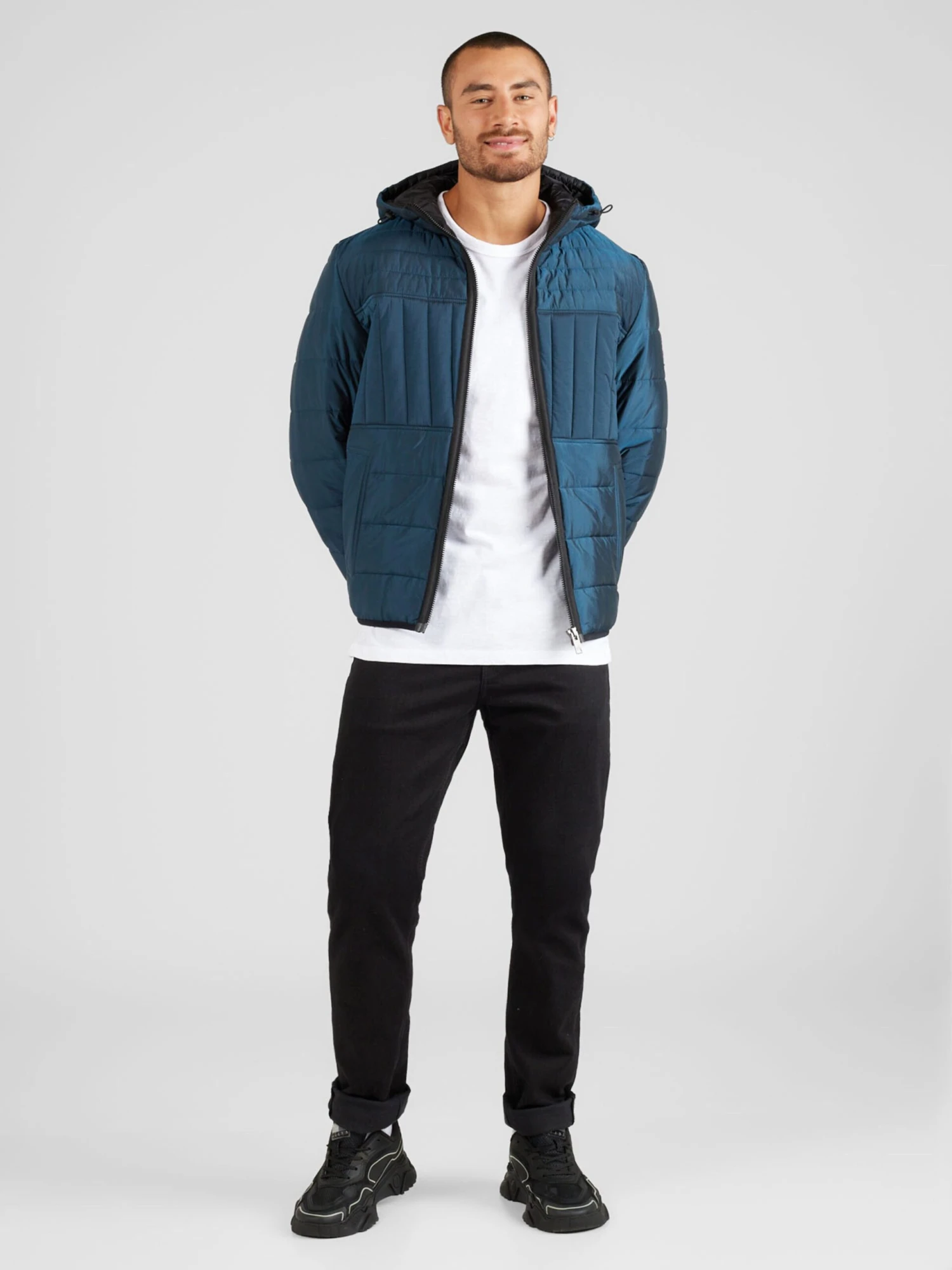 EffenGewatteerde jasIngelegde zoom/randMet capuchonRitszakken aan de zijkantOp staal nadenGladde stofLicht gevoerdRitssluiting