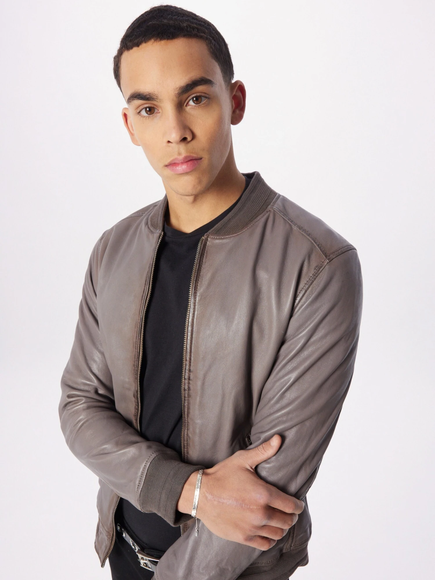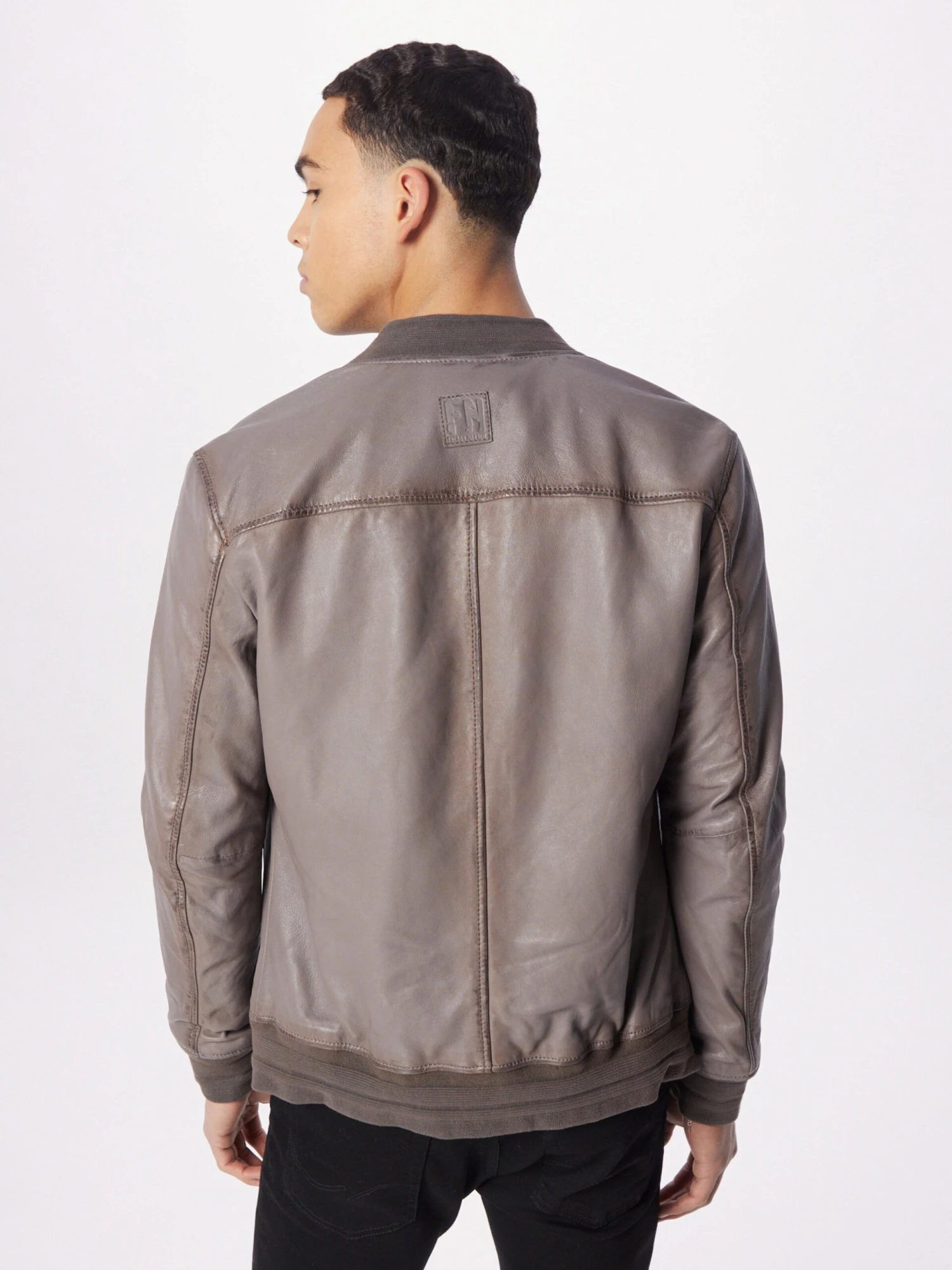 EffenLeerBomberjackGeribbelde kraagRechte zoomGeribd ceintuurtjeRitszakken aan de zijkantKorrelig lederLabel patch/label flagOp staal nadenGewassen effectZware stofLicht gevoerdRitssluiting