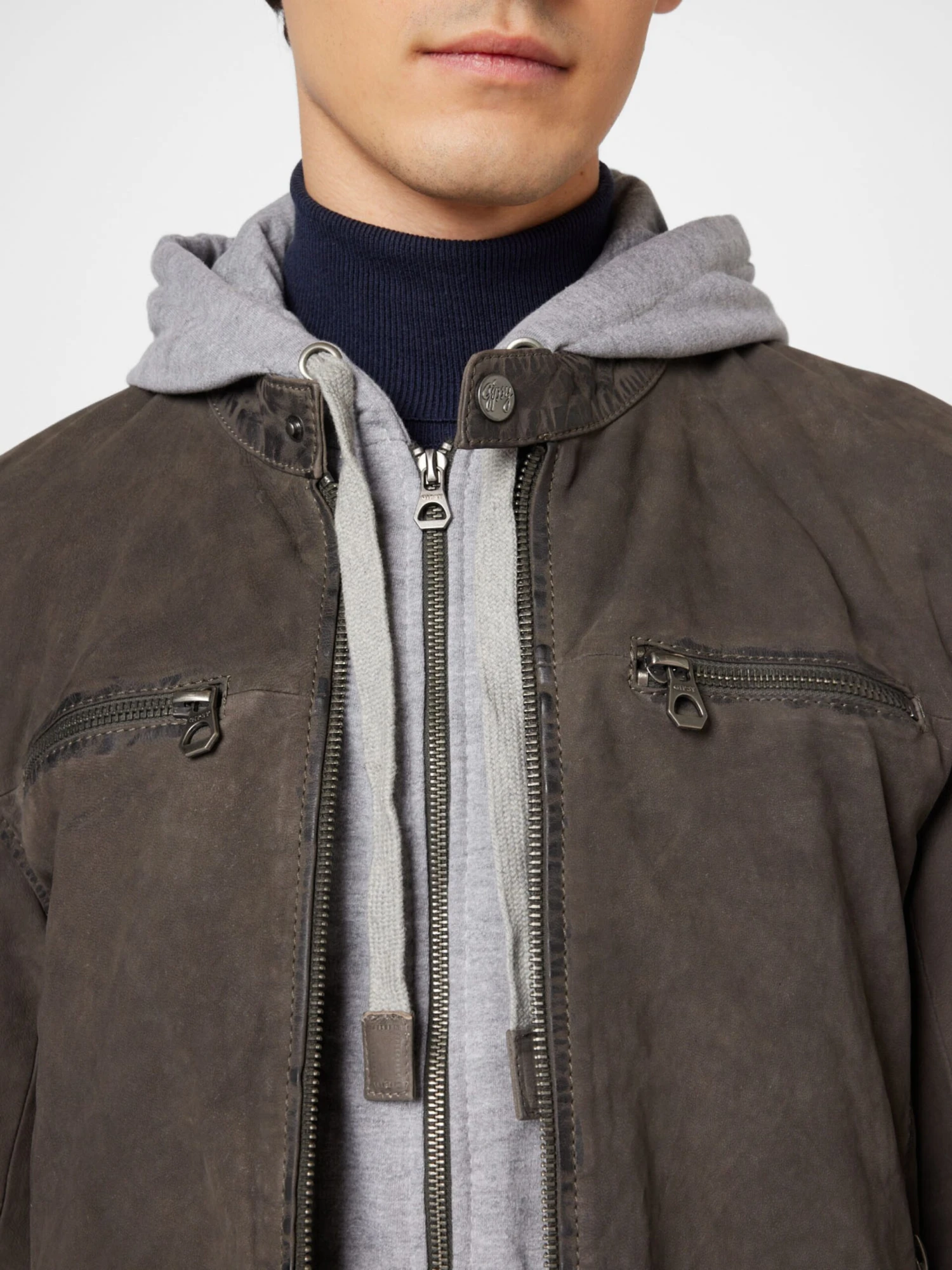 Buitenmateriaal: 100% LeerVoering: 100% KatoenMouwvoering: 100% Polyester – PESCapuchon: 55% Katoen, 45% Polyester – PESBevat niet-textiele delen van dierlijke oorsprong: JaLand van herkomst: Pakistan