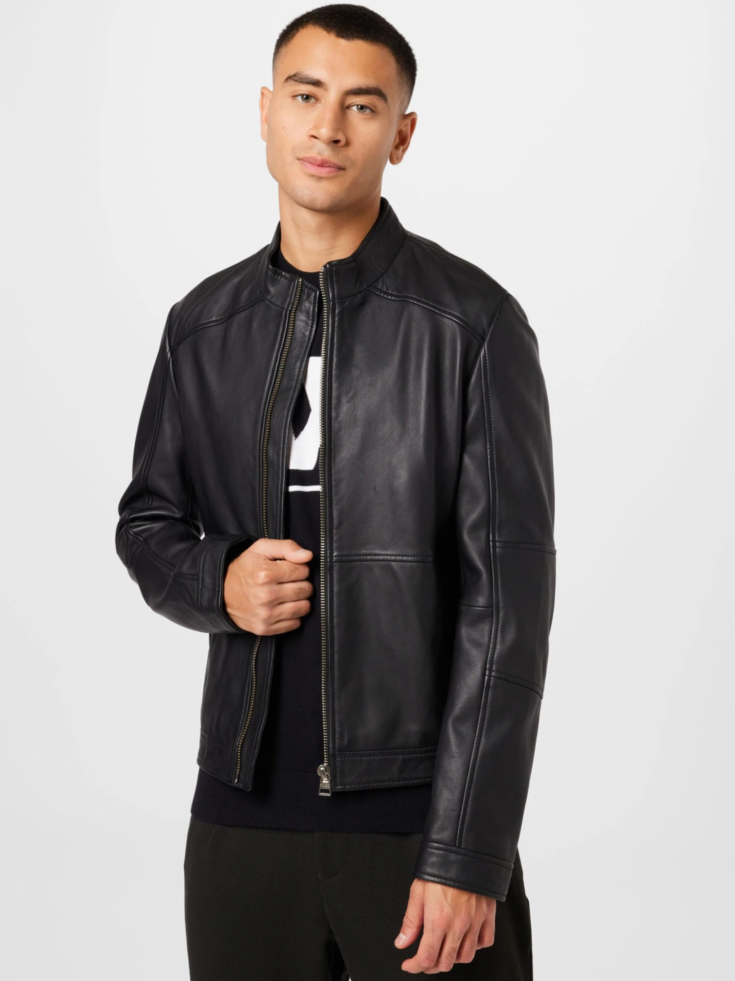 EffenLeerBikerjackRechte zoomRecht modelStaande kraagOp staal nadenBuigzame gripStevige stofLicht gevoerdRitssluiting