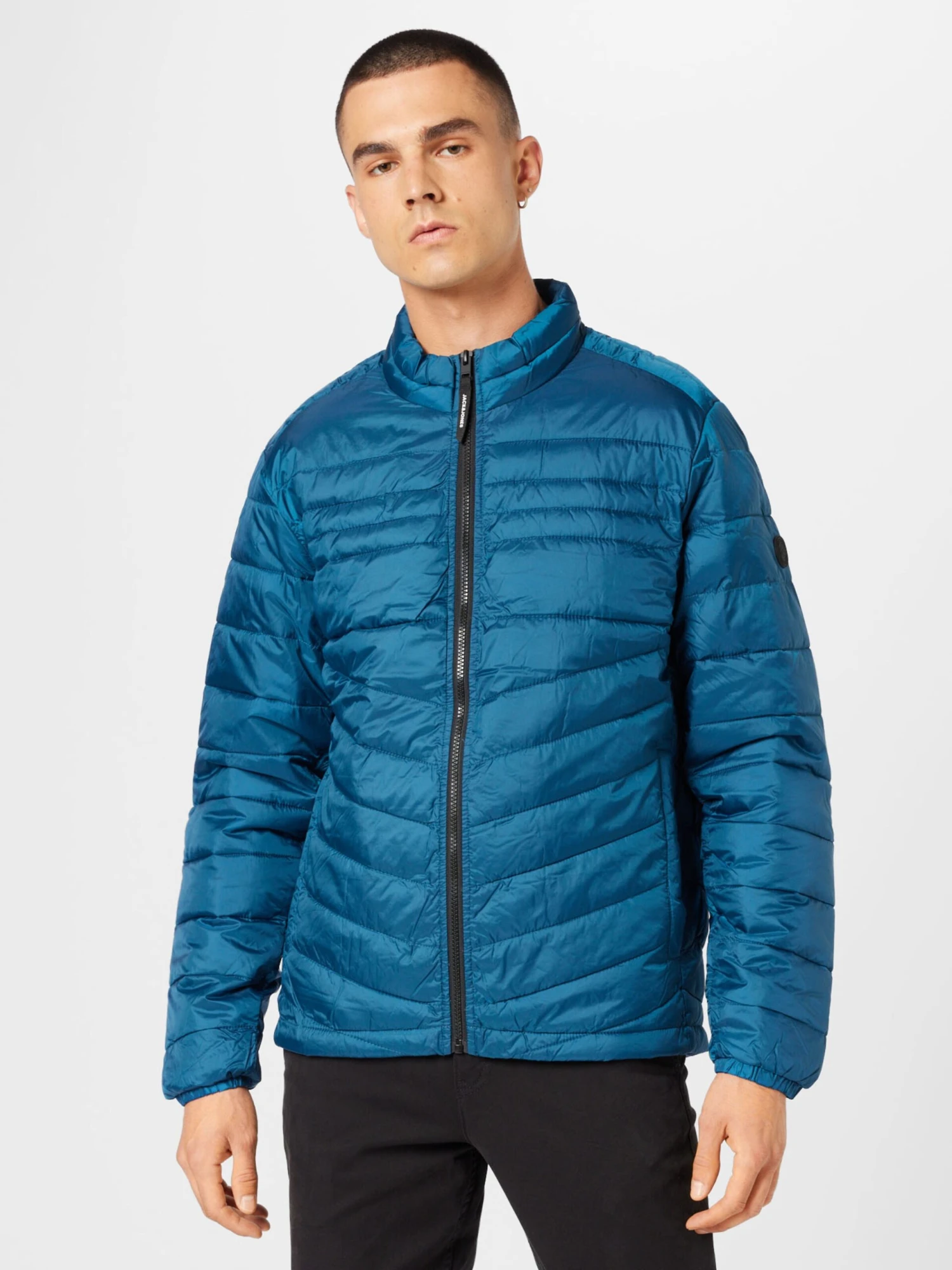 EffenGewatteerde jasRechte zoomStaande kraagZakken aan de zijkantLabel patch/label flagStikselsGladde stofWarm gevoerdRitssluiting