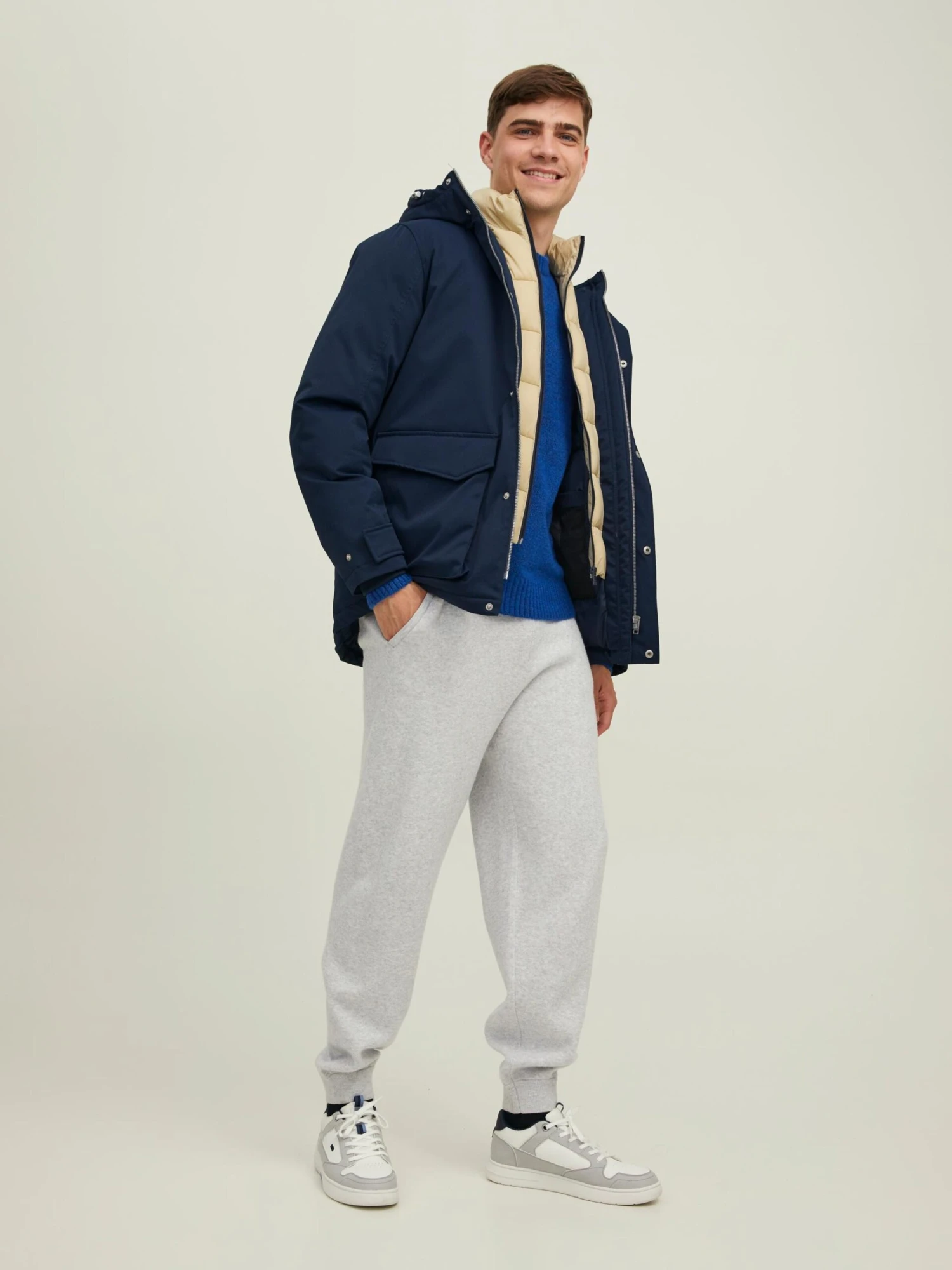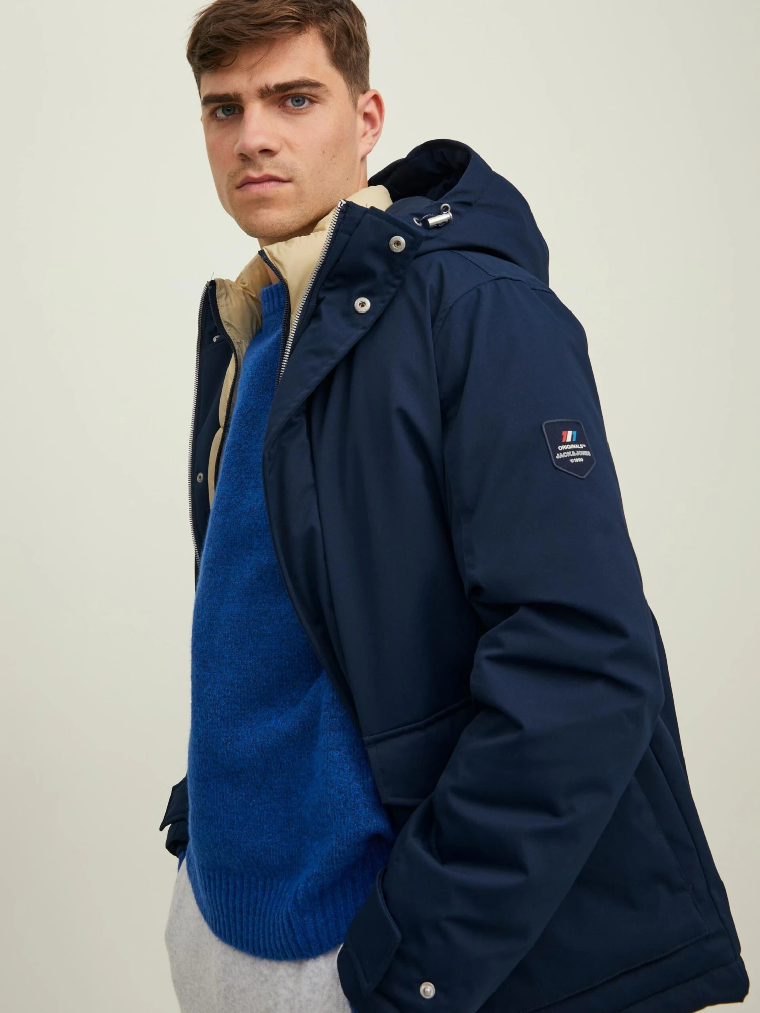 EffenCapuchon met trekkoordStaande kraagVerborgen ritsOpgezette zakkenOp staal nadenZware stofWarm gevoerdRitssluiting
