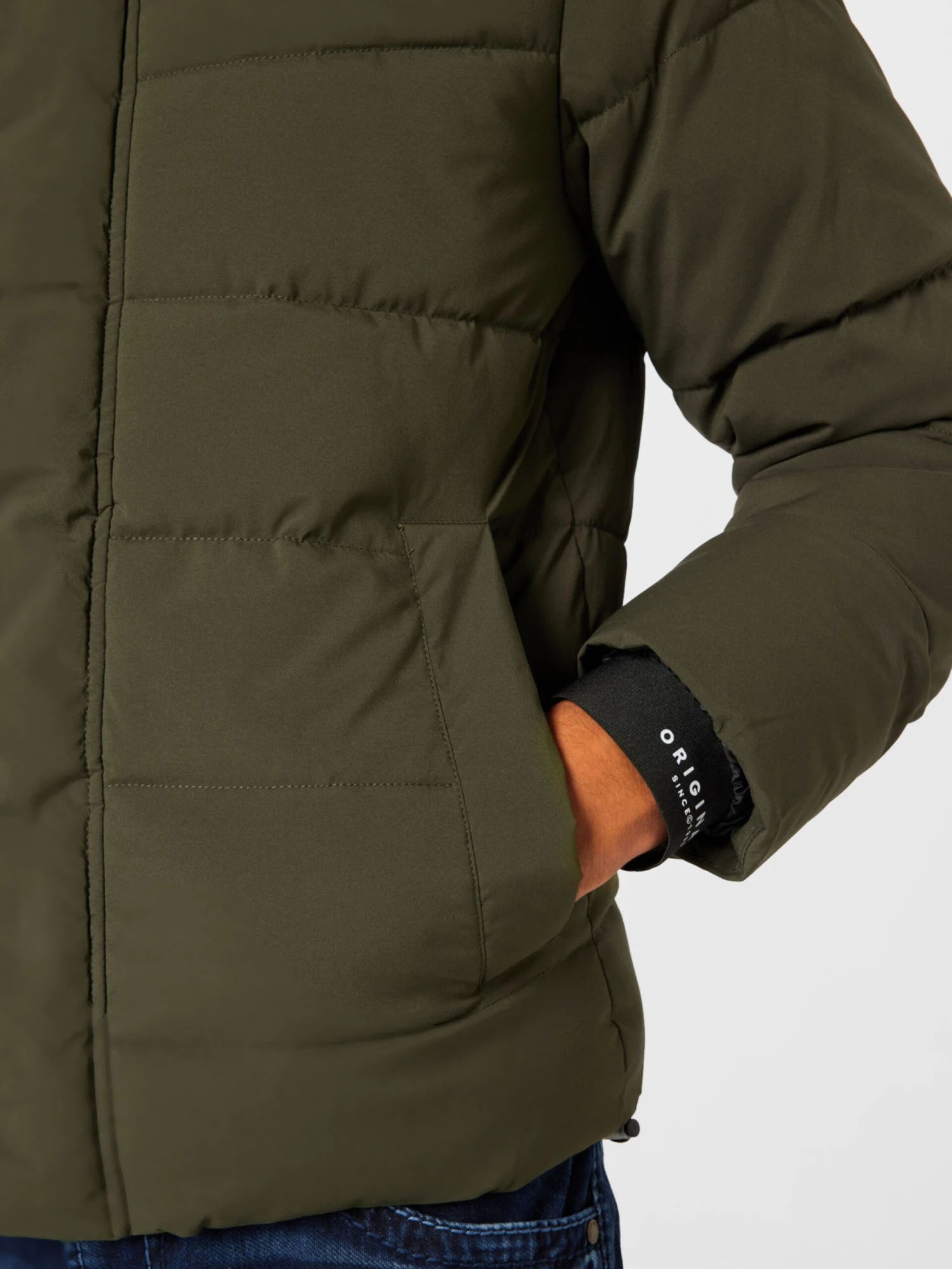 EffenGewatteerde jasRechte zoomGeribd ceintuurtjeVerborgen ritsZakken aan de zijkantVerstelbare capuchonTrekkoord in de boordStikselsWaterdichtWarm gevoerd