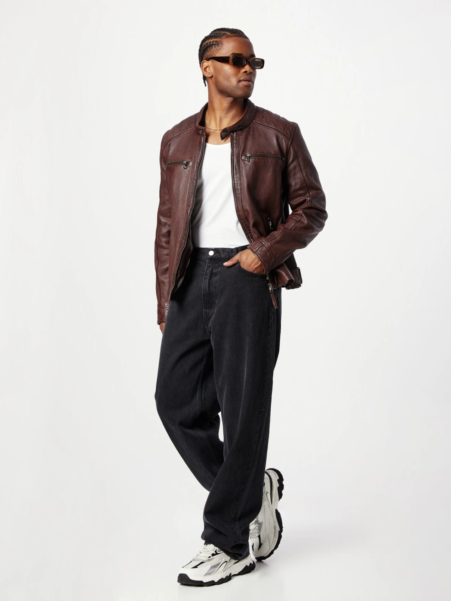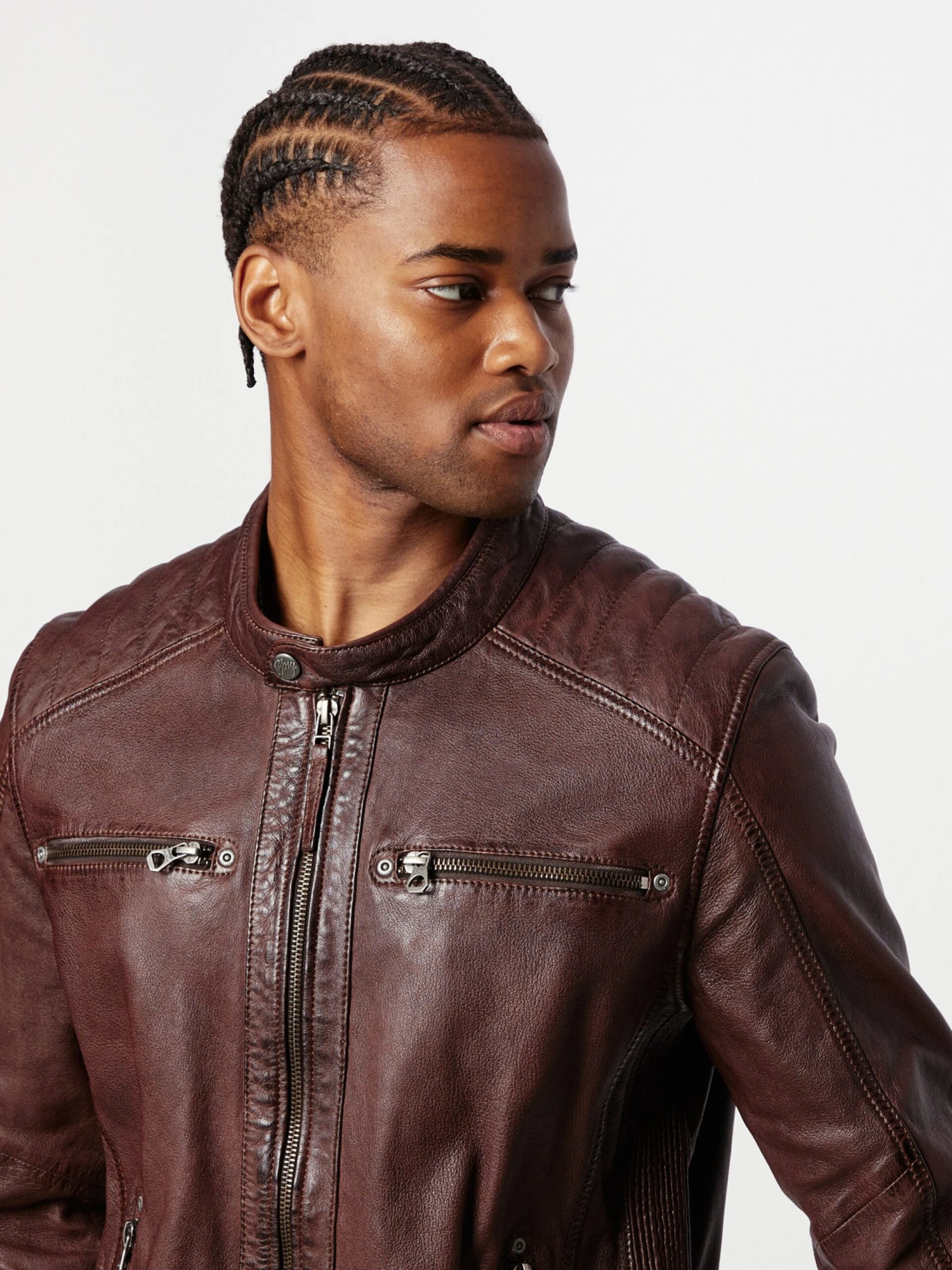 EffenLeerBikerjackDrukknopsluitingMouw ritsBorstzakRitszakken aan de zijkantVerstelbare tailleLabel patch/label flagStevige stofLicht gevoerdRitssluiting