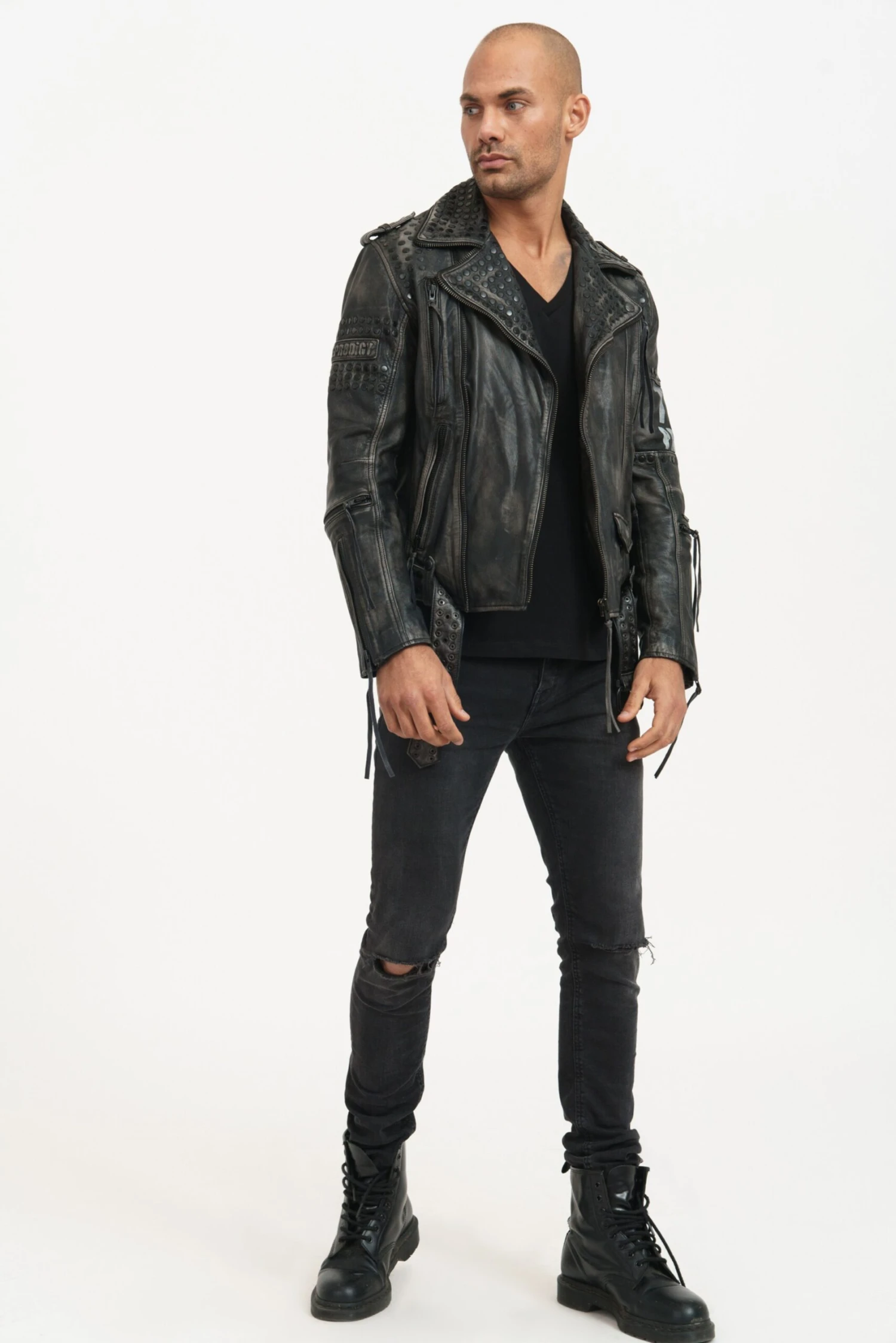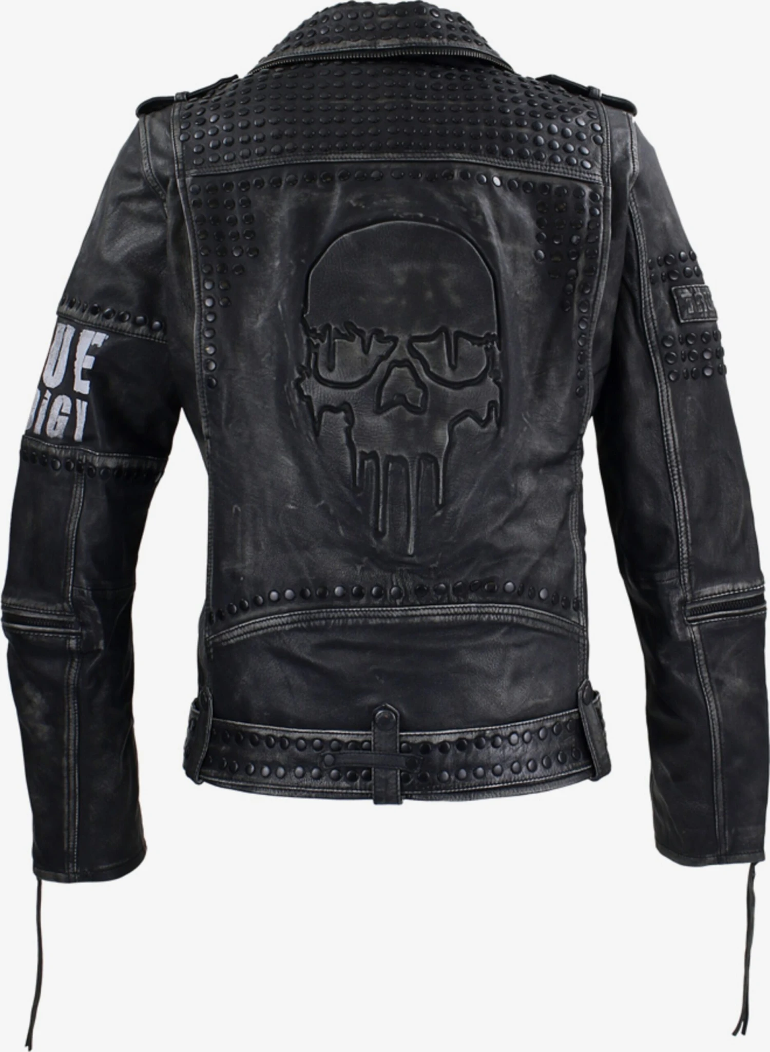 MotiefprintLeerBikerjackRitssluitingMouw ritsRevers kraagMet riemStudsPaillettenKorrelig lederLicht gevoerd