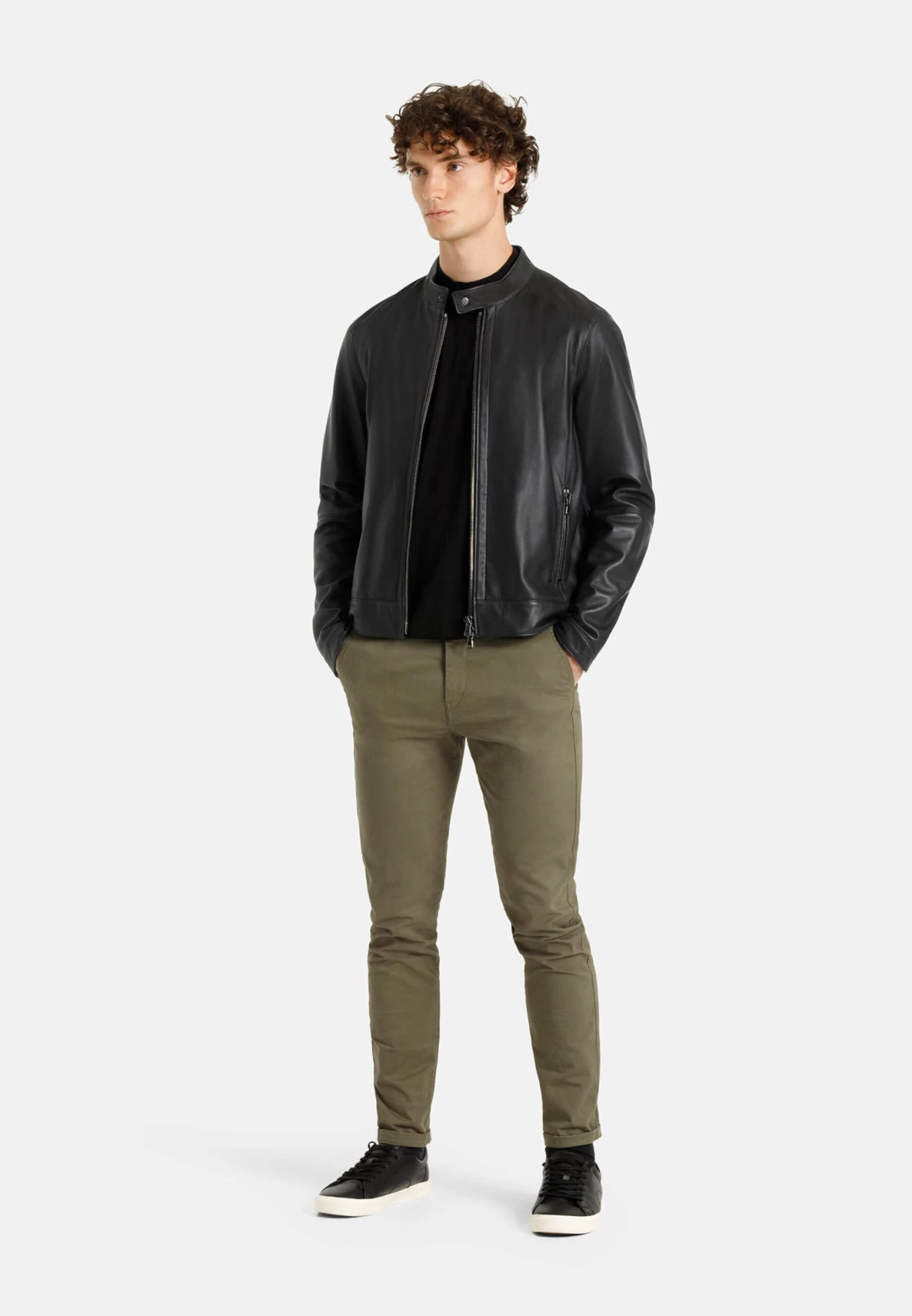 EffenLeerBikerjackNiet gevoerdRitssluiting