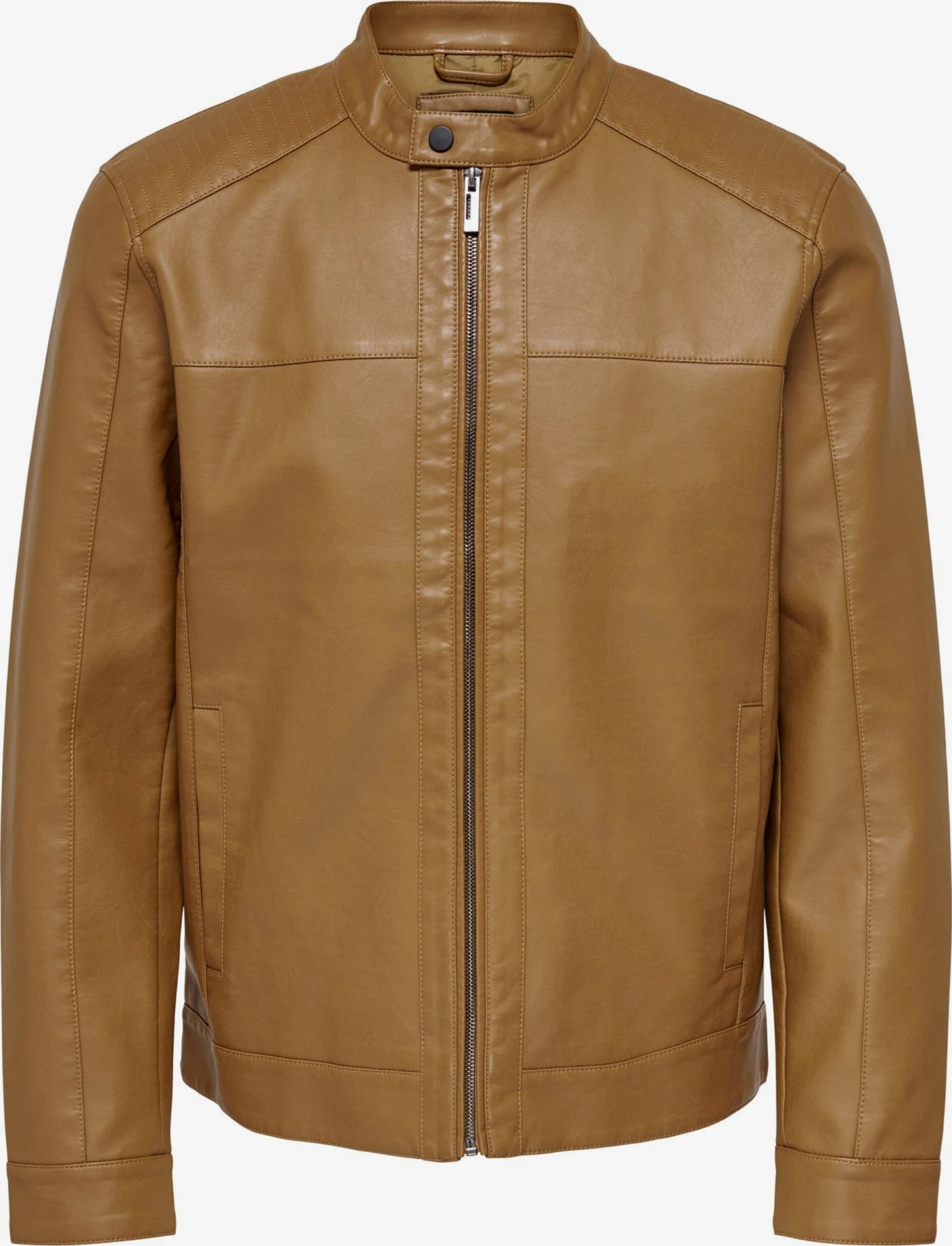 EffenImitatielederBikerjack1-knoops manchettenZakken aan de zijkantKnop sluitingOp staal nadenStevige stofLicht gevoerdRitssluiting