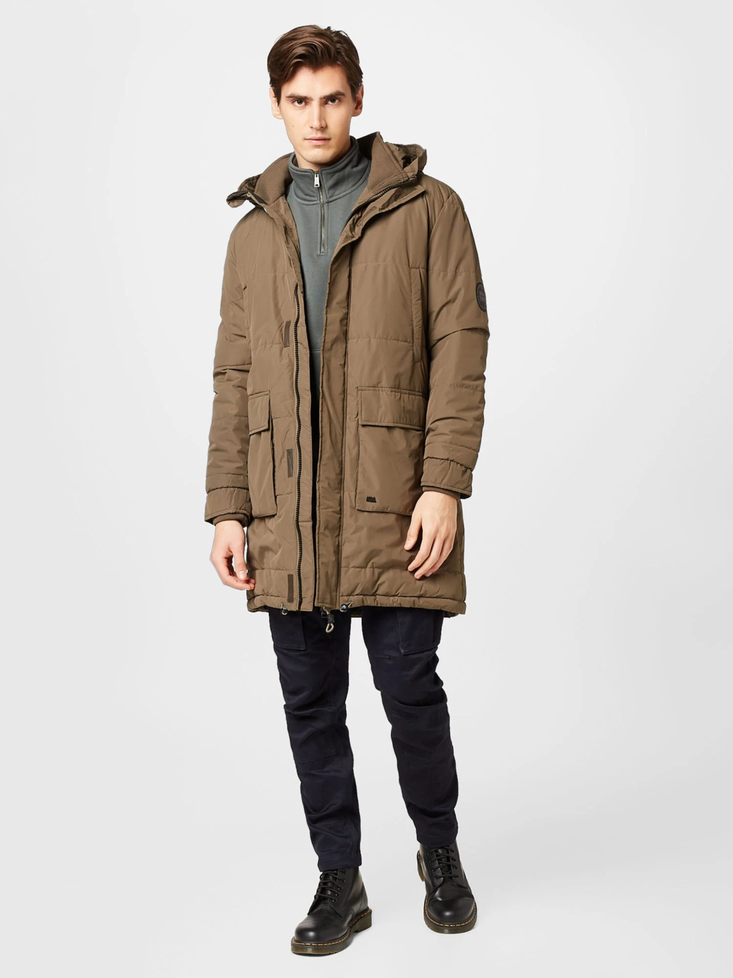 EffenGewatteerde jasCapuchon met trekkoordVerborgen ritsOpgezette zakkenTrekkoord in de boordLabel patch/label flagWarm gevoerdRitssluitingGerecycled polyester