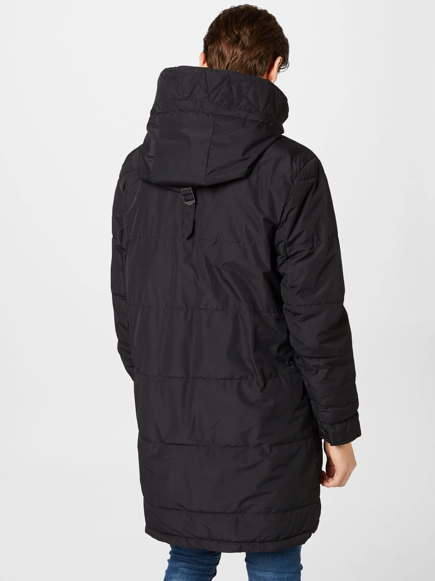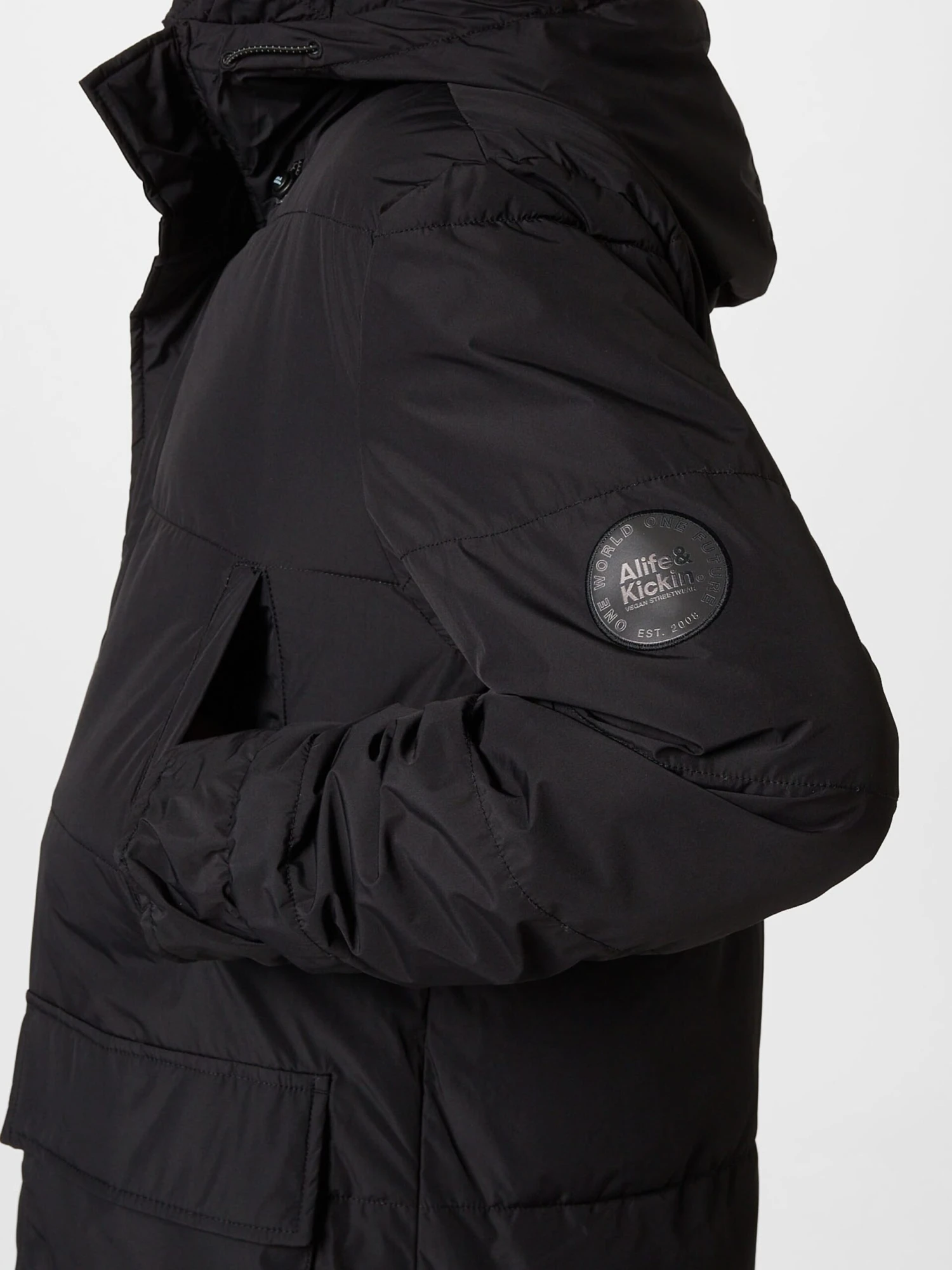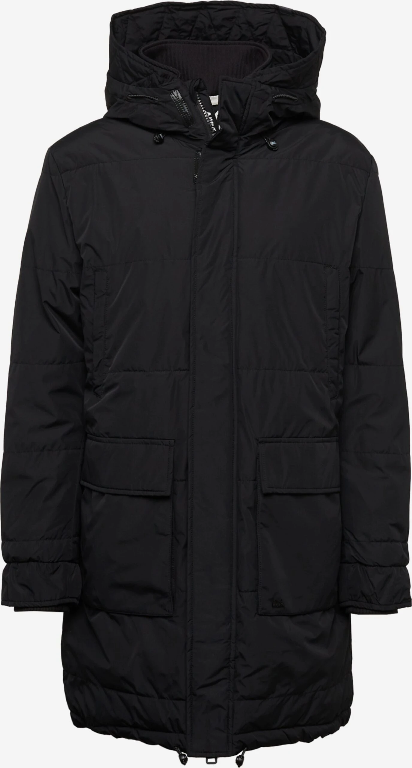EffenGewatteerde jasRechte zoomCapuchon met opstaande kraagVerborgen ritsBorstzakOpzet-/flapzakLabel patch/label flagStikselsOp staal nadenGladde stofWarm gevoerdRitssluitingGerecycled polyester