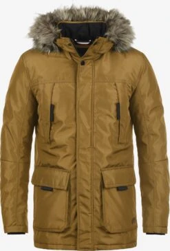 EffenCapuchon met afneembare nepbont kraagOpgezette zakkenBorstzakBinnenzakLabel patch/label flagWarm gevoerd