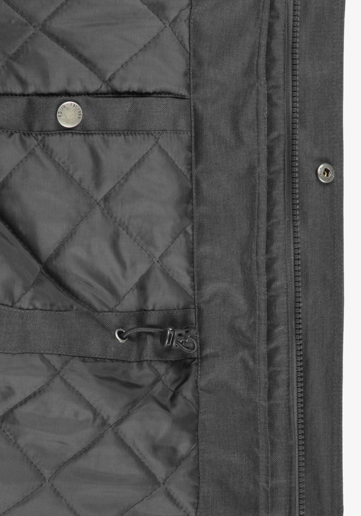 EffenGevoerde capuchonCapuchon met opstaande kraagVerborgen ritsVerlengd rugpandBorstzakBinnenzakOpzet-/flapzakRits zakVerstelbare tailleLabel patch/label flagWarm gevoerd