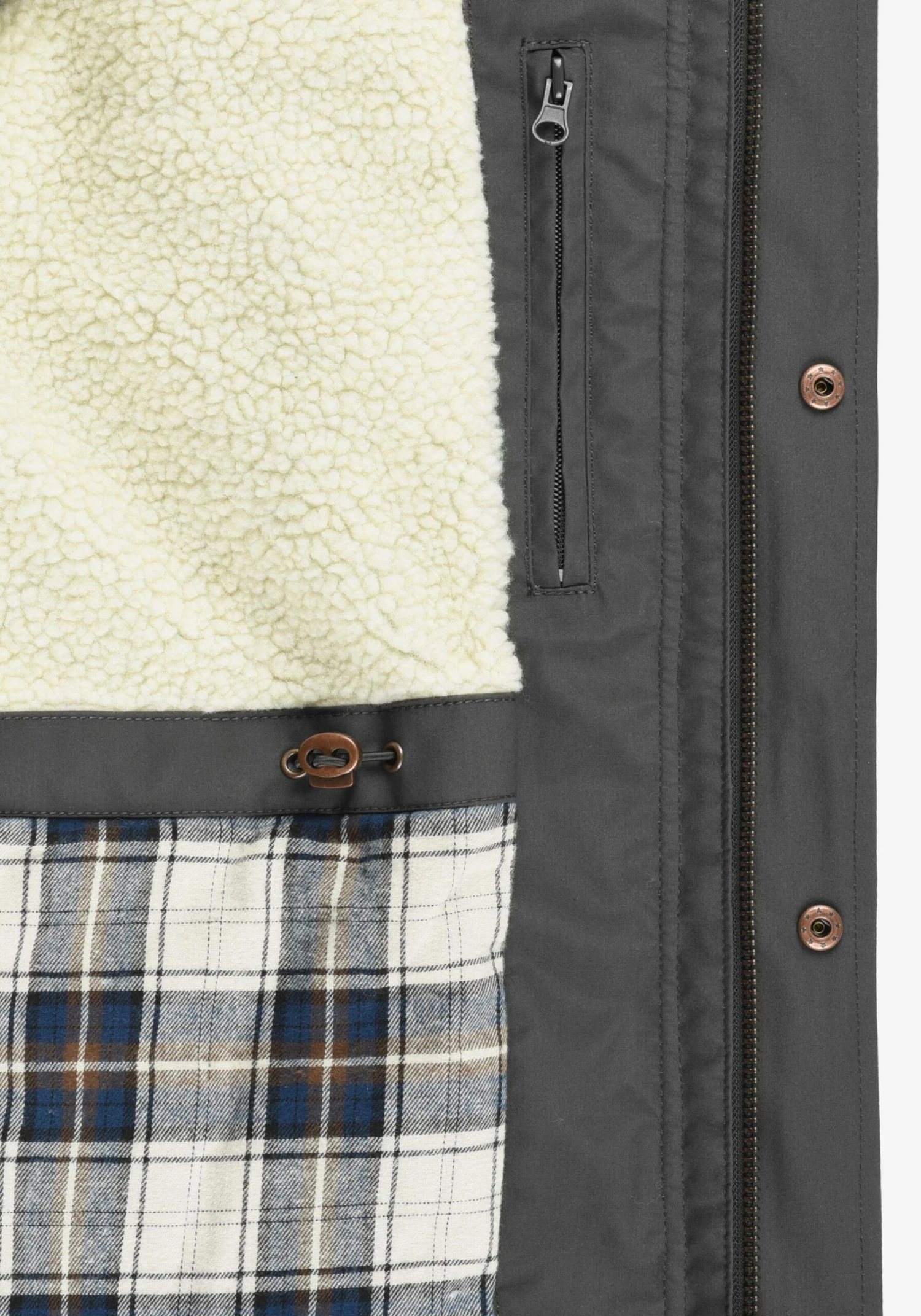 EffenGevoerde capuchonCapuchon met opstaande kraagCapuchon met trekkoordVerborgen ritsBorstzakBinnenzakOpzet-/flapzakVerstelbare tailleLabel patch/label flagWarm gevoerd