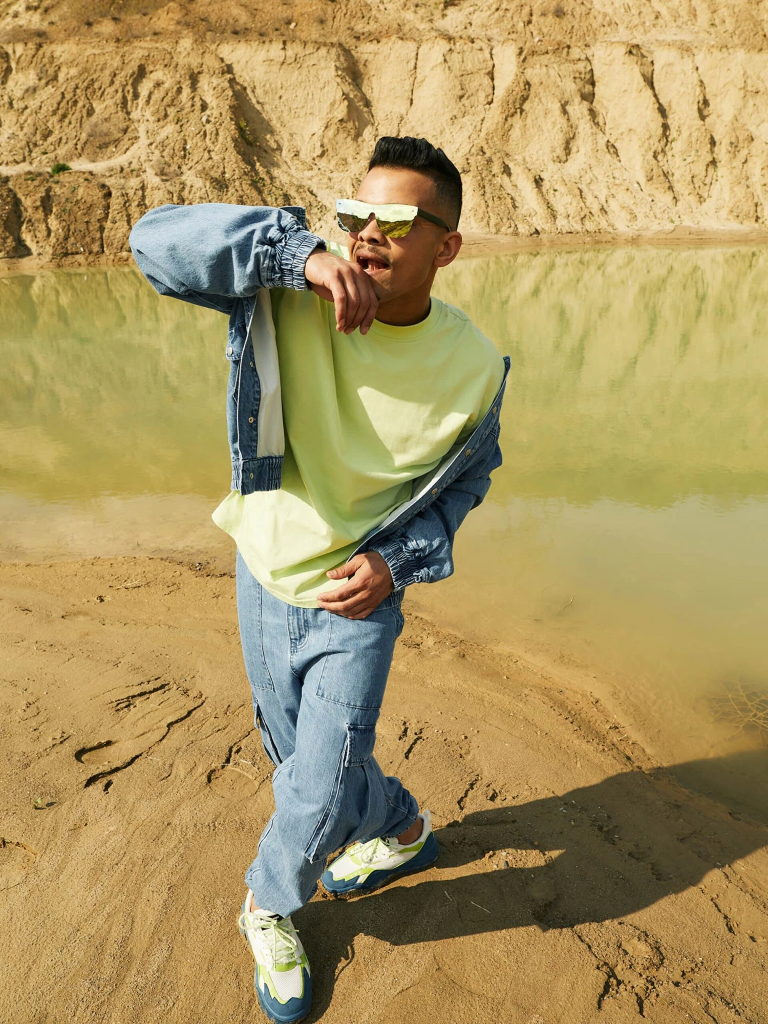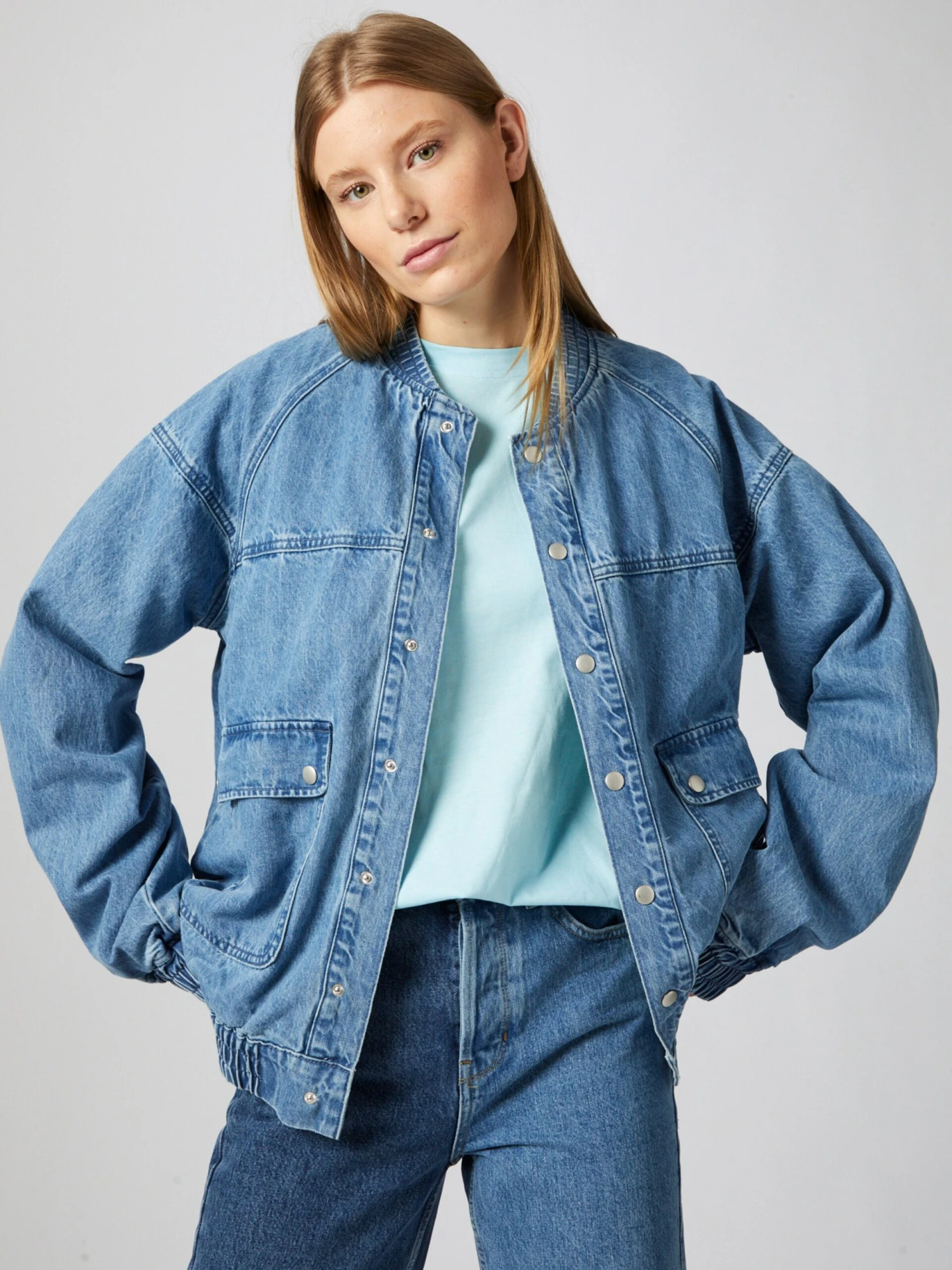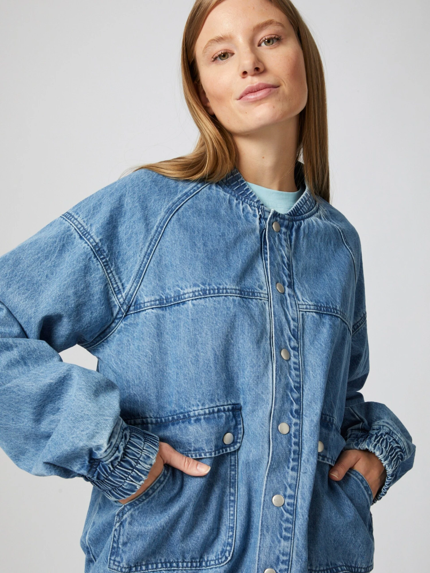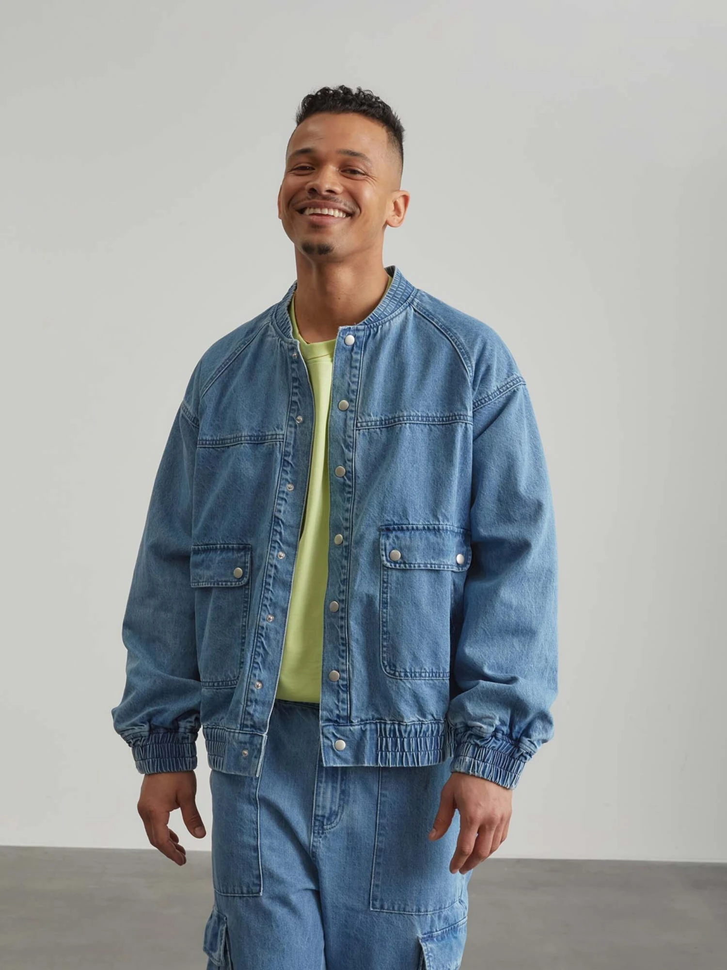 EffenDenimKnop placketDeelnadenOpgezette zakkenVaste gripLicht gevoerd