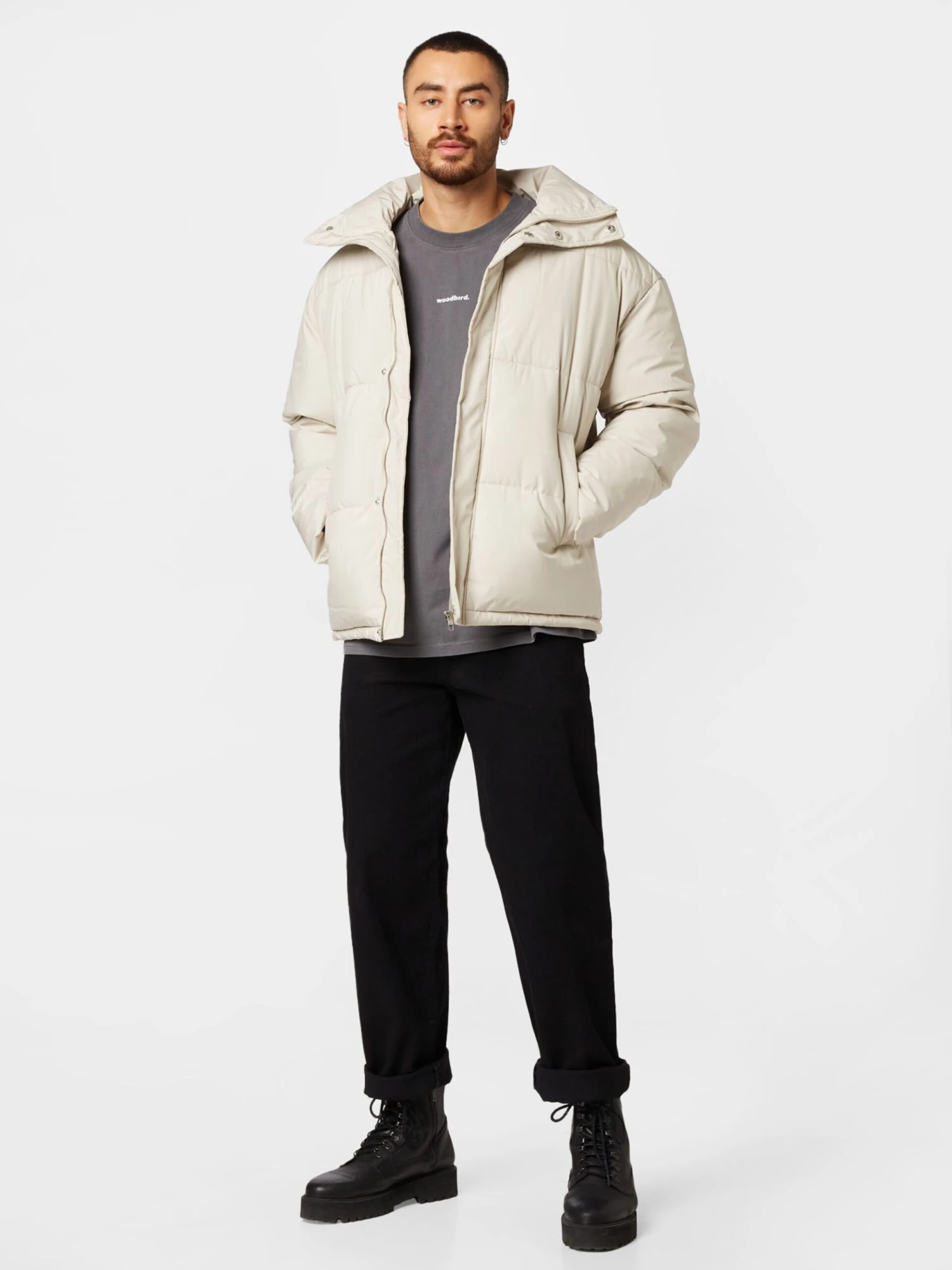 EffenGewatteerde jasDrukknopenStaande kraagVerborgen ritsZakken aan de zijkantStikselsGladde stofWarm gevoerdRitssluiting